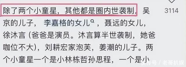 对比之下,两个非星二代童星的处境就真实多了。韩昊霖凭《庆余年》里的小范闲圈粉,孙思程靠《欢乐家长群2》的糖豆一角走红,都是实打实拼演技熬出来的,可在封面里也只能当个“背景板”。有网友算过一笔账:普通孩子想上省级晚会,得从小练才艺、跑选秀,层层筛选才能露个脸;星二代随便拍段日常,就能被粉丝夸“有天赋”,直接空降杂志封面。 这也是为啥争议这么大——大家不是反对星二代进圈,毕竟吴虑耍武术时的灵气、小泡芙的综艺感确实亮眼,真有才华没人会排斥。可问题在于,普通练习生在韩国熬七八年可能都出不了道,沈佳润却能自带公司出道;群演跑十年龙套未必能碰上周润发,吴京儿子刚六岁就和老戏骨搭戏。这种“未战先赢”的资源世袭,才是最让人膈应的地方。